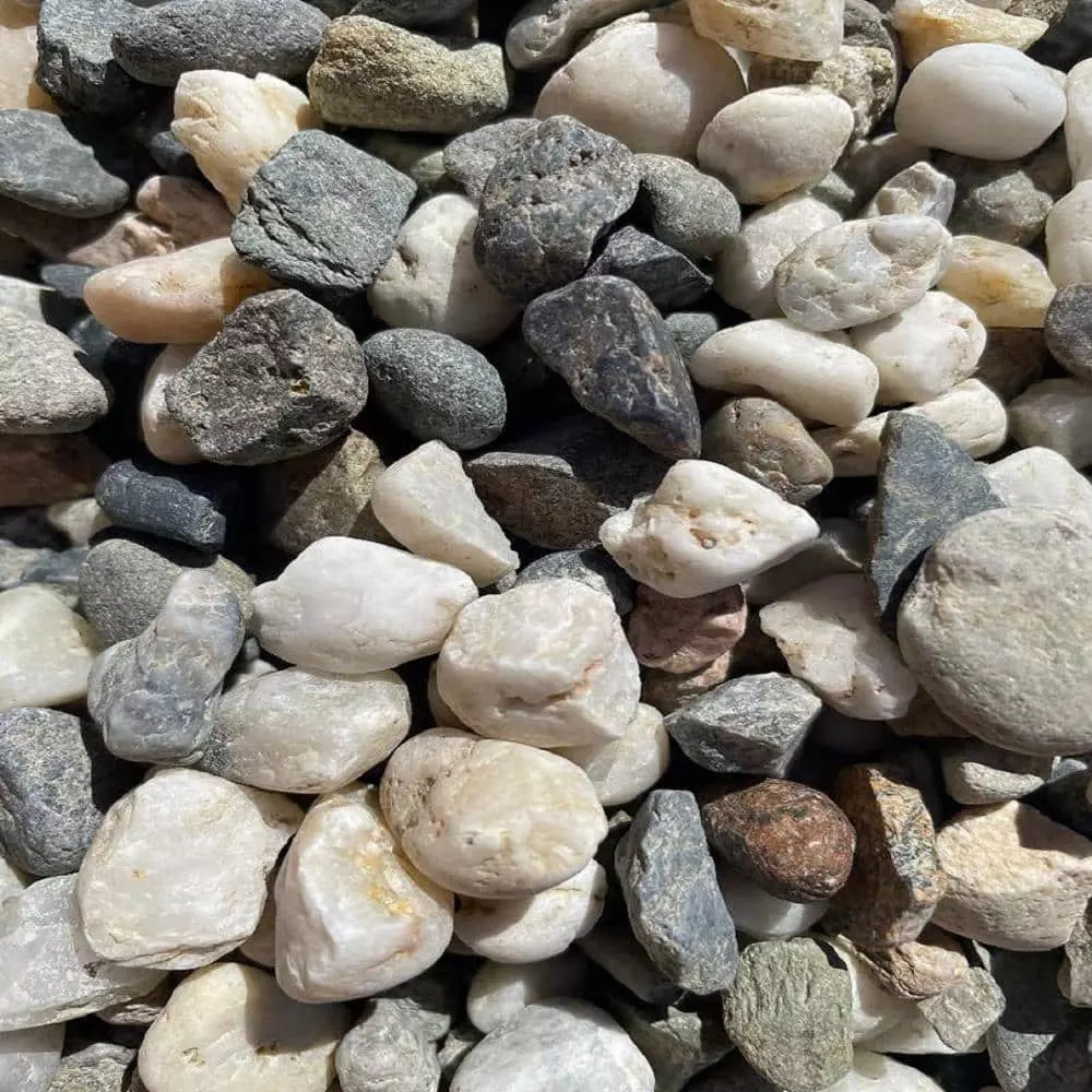 This 0.50 cu. ft. 40 lbs. 1/2 in. Alpine Blend Decorative Landscaping Pebble has been smoothed and polished by the natural elements of mother earth. These beautiful stones will add a dynamic element to your garden landscape and are the perfect material to be used for drought tolerant, water wise dry-scape landscaping and gardening. The beautiful mixed colors include white, ivory, light and dark grey, with a hint of tan and will create a dramatic, natural affect when used in gardens, ponds and stream beds as well as around trees, walk ways, driveways and patio’s. These stones are easy to spread, protect soil from temperature extremes, restrain the growth of weeds and can also be used to help protect drainage areas from erosion.