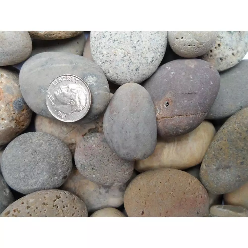 - Product consists of 500 lbs. of 1 in. to 3 in. buff beach pebble shipped in a mini sack bag on a pallet