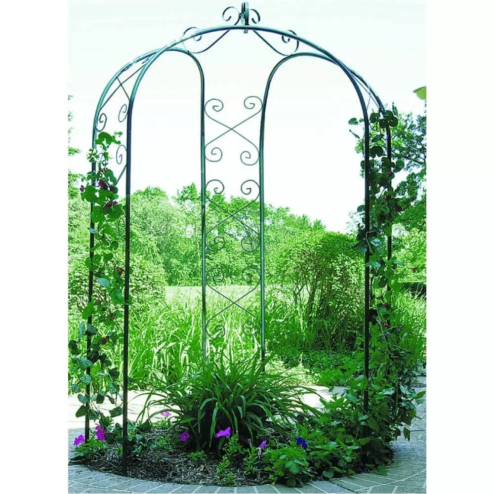Enrich your setting with the beautiful Gilbert & Bennett trellis arch. Allow vining and climbing plants to grow through the ornate scroll work while knowing that the durable hunter green powder-coated steel is sure to last through all the elements. Standing at 91 in high and 71 inches wide this three-sided architectural trellis arch provides the perfect spacious location for any outdoor or indoor setting such as a wedding ceremony. Whether used year-round as outdoor garden decor or sporadically for special functions, this trellis is certain to add eye-catching allure to your space. Note: assembly is required.
