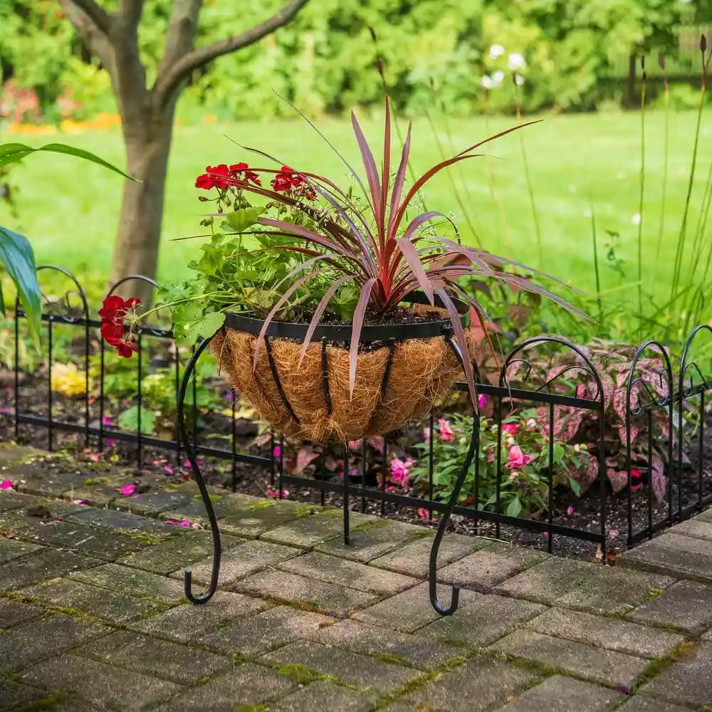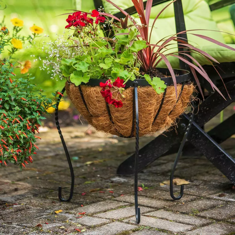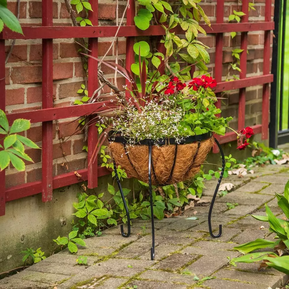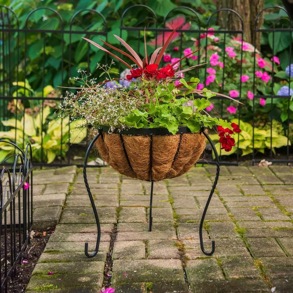The CobraCo Canterbury 14 in. Metal Basket Stand Planter is made from metal with a 100% biodegradable coco liner. The planter is designed with 3 curved legs for security and support. Replacement liners sold separately