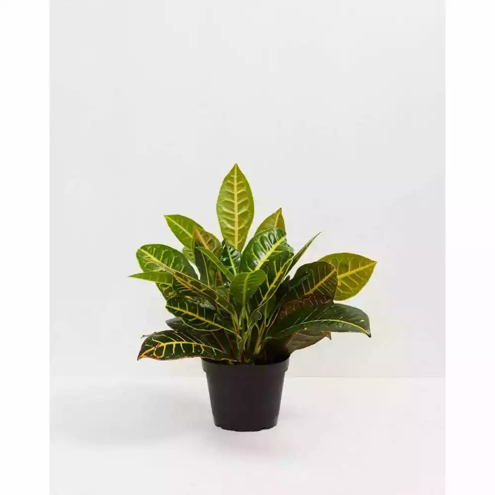 Add some color to your home with this medium croton petra. This gorgeous tropical plant thrives in brightly lit spots. The more sun they get, the more rainbow shades will appear in their variegated foliage. You can usually expect warm stripes of red, pink, and yellow contrasting with dark green. Bright and bold, they are surprisingly easy to care for.This croton petra is packed with vibrant tropical colors. A rainbow marvel, they are at their best in bright rooms. Exposure to the sun helps their foliage to flourish in shades ranging from yellow to red and everything in between. In addition, they are easy to care for, making them a great tropical plant for beginners.