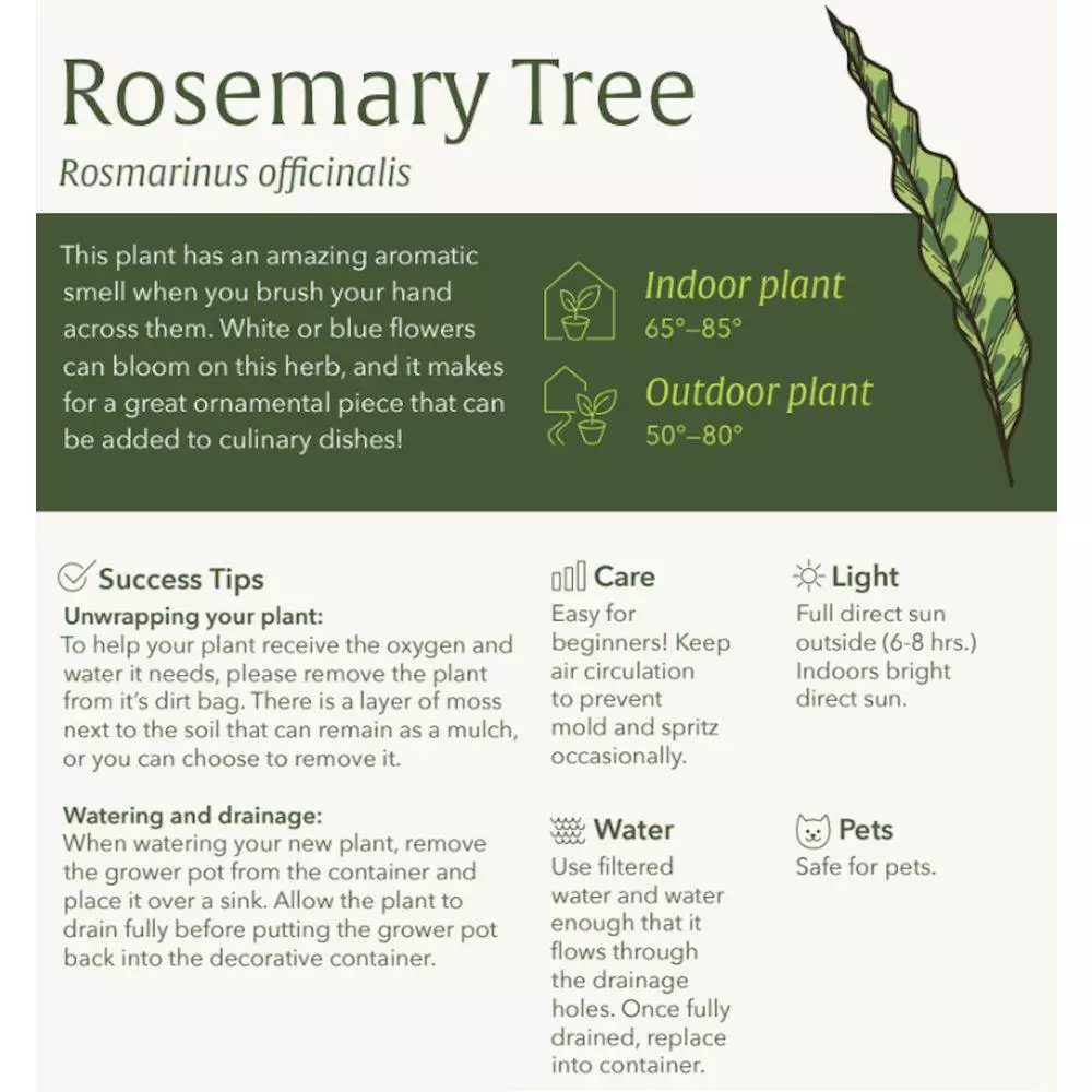 Enjoy the intense aromatic smell of Rosmarinus officinalis (Rosemary) as you brush them with your hand or along the garden path. Their gray-green, needle-like leaves grow up to 1.5 in. L and are closely spaced together. White or blue flowers eventually bloom on this herb, making them more appealing in the garden. Use as an ornamental in the garden or a garden pot. Add them to your culinary dishes with meats and veggies or make scented sachets.