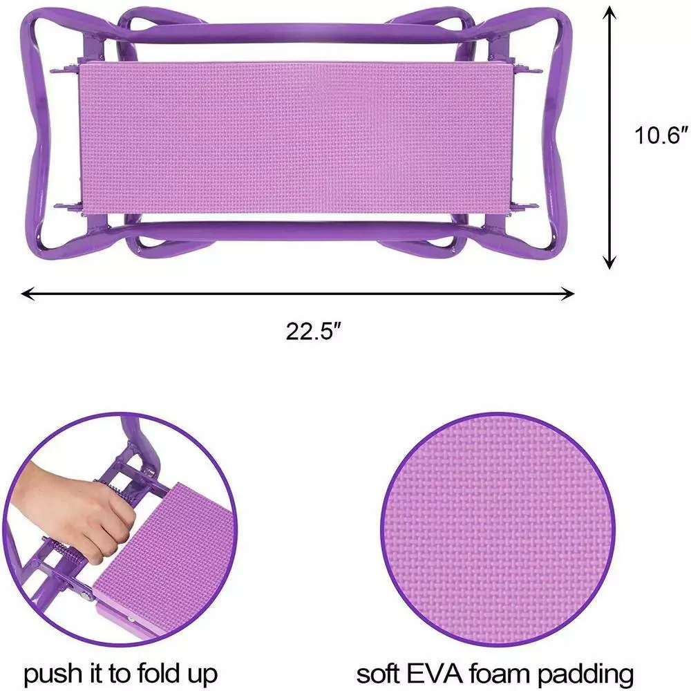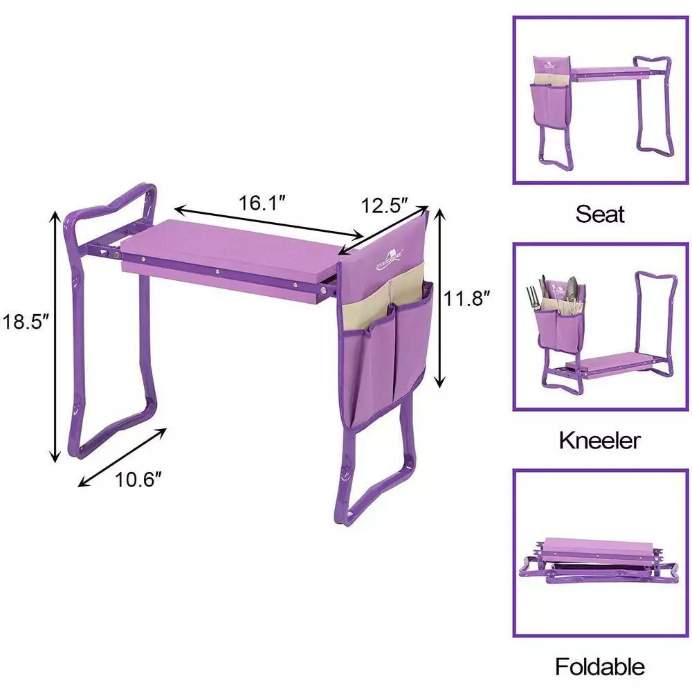 The gardening kit includes a pair of gardening gloves and a kneeling stool for gardening, camping, outdoor seating and more. It is made of sturdy steel pipe, with a thick cushion and a side pocket for storing tools. Easy to assemble and fold, easy to store! It can withstand 300 pounds of gravity.
