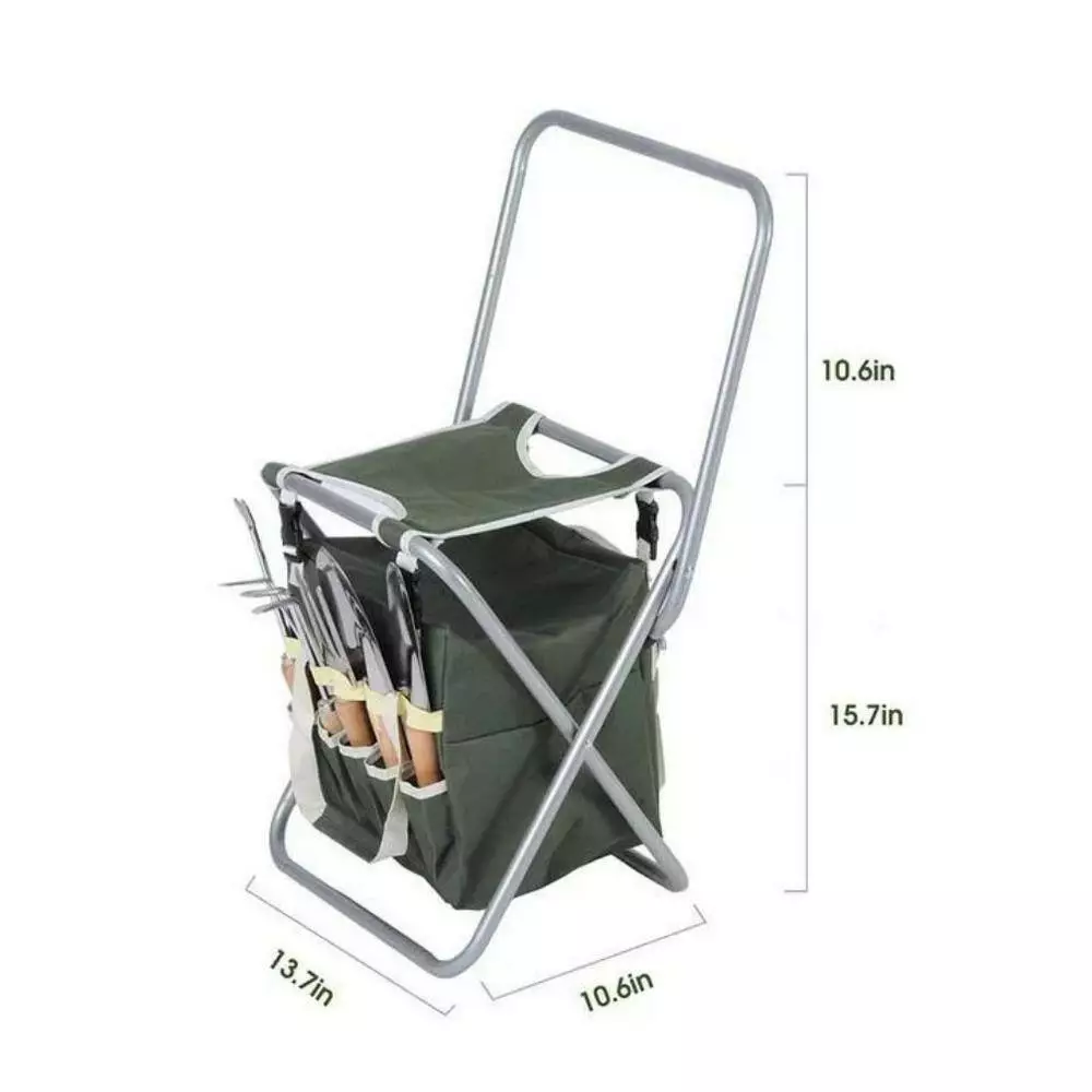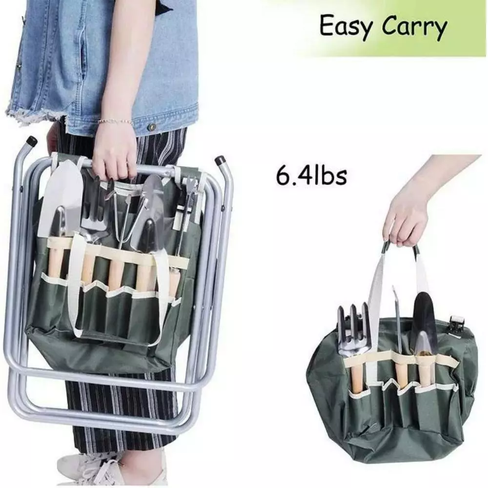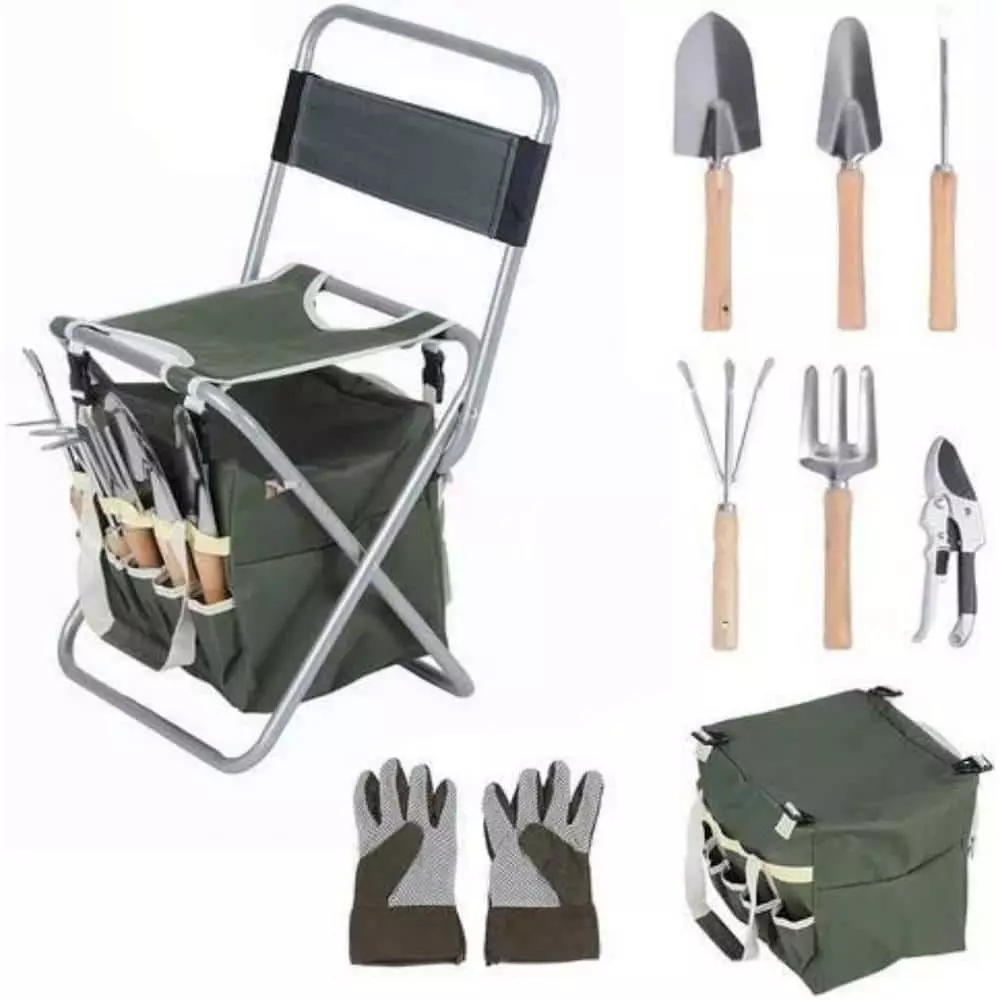 - The total variety of tools: The gardening set included 1xTote bag, 1xGarden Seat,1x Gloves,1 x Trowel, 1 x Transplanter, 1 x Pruner,1x Handle Rack,1x Weeder,1X Handle Shovel