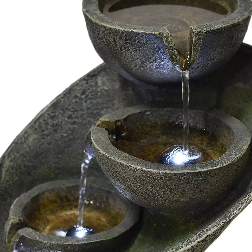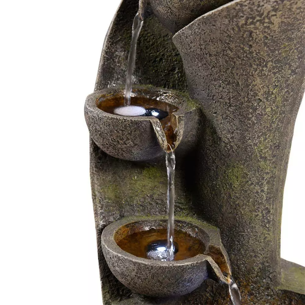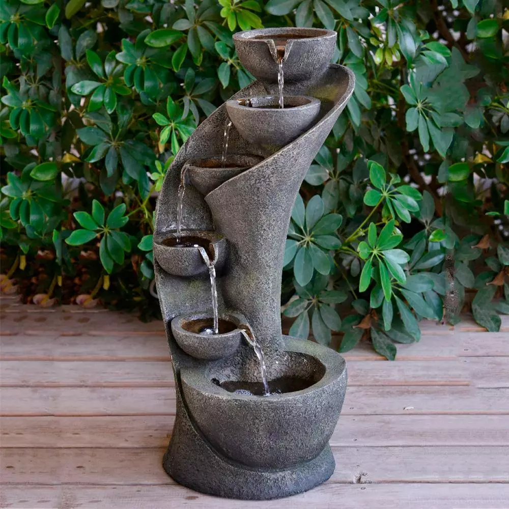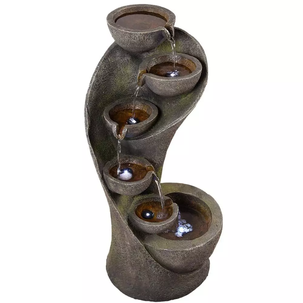 This is a 6 layer resin fountain that is very attuned to nature and helps you enjoy the sound of nature with the soothing and peaceful sound of water. This outdoor fountain is perfect for decorating your garden, yard, deck, porch or yard. Resin and polyester fiber structure can be weatherproof, rust proof and durable, long service life. LED lights are installed in the fountain floor to highlight the movement of the trickling water. Complete the installation according to the instructions for normal use.