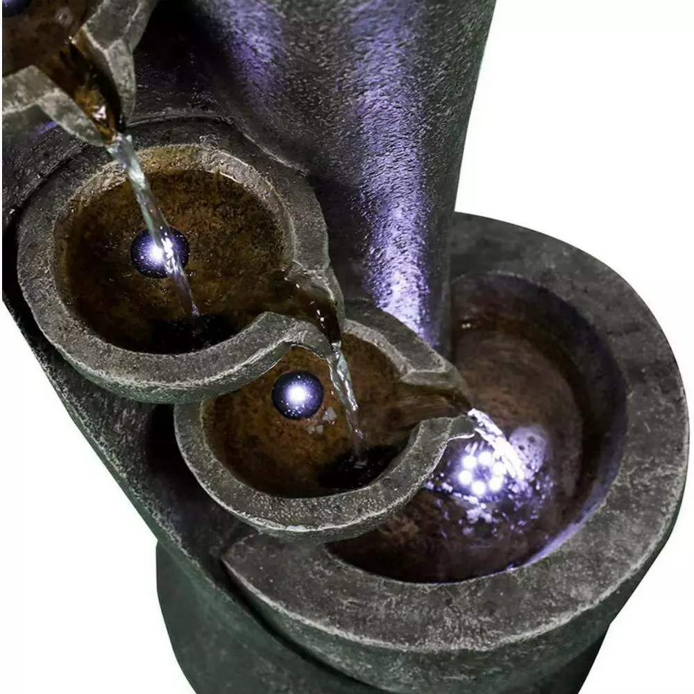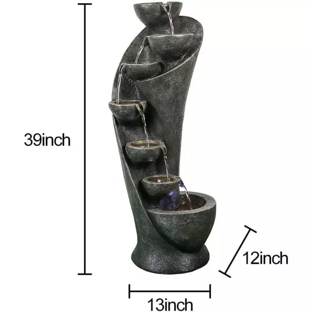This is a 7 layer resin fountain that is very attuned to nature and helps you enjoy the sound of nature with the soothing and peaceful sound of water. This outdoor fountain is perfect for decorating your garden, yard, deck, porch or yard. Resin and polyester fiber structure can be weatherproof, rust proof and durable, long service life. LED lights are installed in the fountain floor to highlight the movement of the trickling water. Complete the installation according to the instructions for normal use.