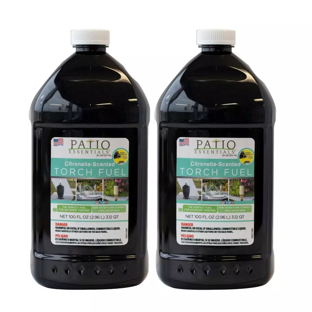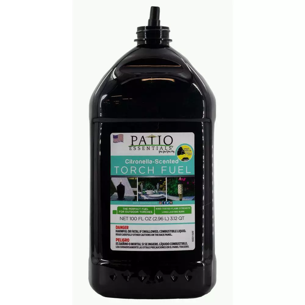 Fill your torches with PATIO ESSENTIALS Citronella-Scented Torch Fuel to create a cozy ambiance in your outdoor space and add to your barrier of protection. Our Pop Up Spout technology and curved handle of the back of the bottle help prevent spills and splashes when filling your torch canisters. One 100 oz. fuel bottle will fill approximately 8 12 oz. fuel canisters (most standard torch fuel canisters range between 12-16 oz. capacity, while tabletop torches have a smaller capacity, around 6 oz.).