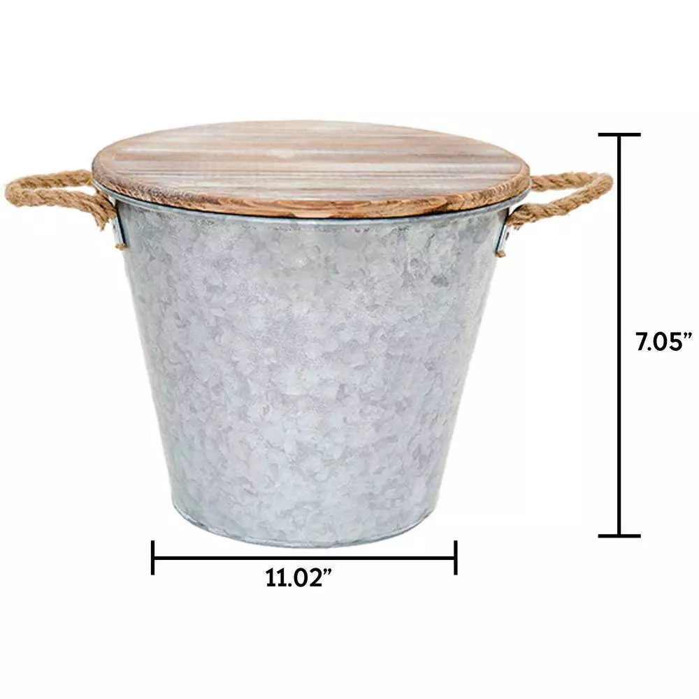 “Bring a little farmhouse decor to your outdoor living space with our Paige Giant Farmhouse Citronella Candle! This outdoor candle comes in a galvanized metal bucket with decorative rope handles and a white-washed wooden lid that create a cozy, rustic feel. At nearly 12 inches tall, this giant citronella candle is the perfect statement piece for your front steps, porch or in a seating area on your back patio. When the candle is burned out at the end of the summer, the bucket is perfect for using as small storage or a decorative accent for fall and winter decor! Pair our Patio Essentials 155-ounce giant bucket citronella candle with any of our other farmhouse or vintage-inspired citronella candles and tiki torches and space them 18-36 inches apart around the perimeter of your outdoor space for maximum coverage.”
