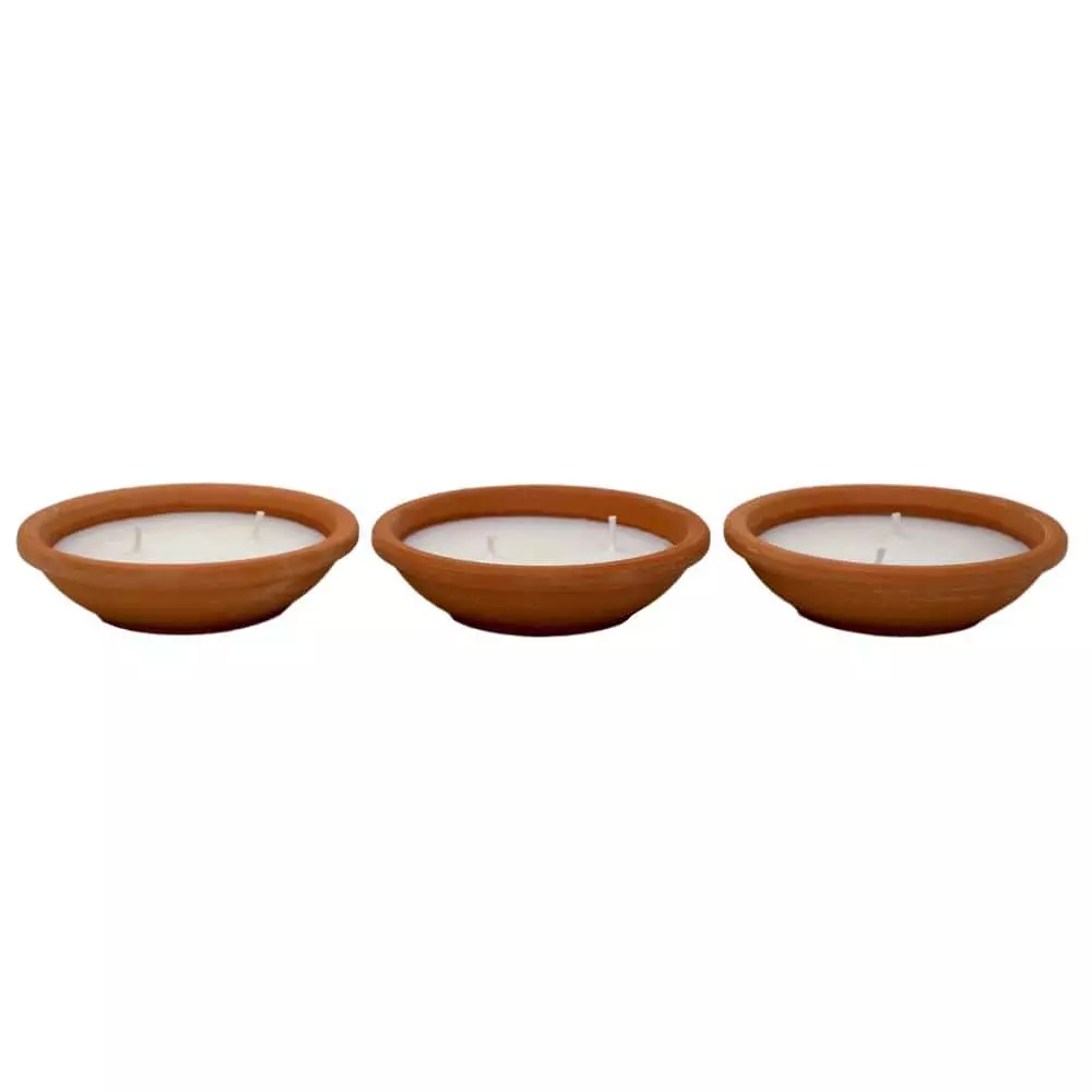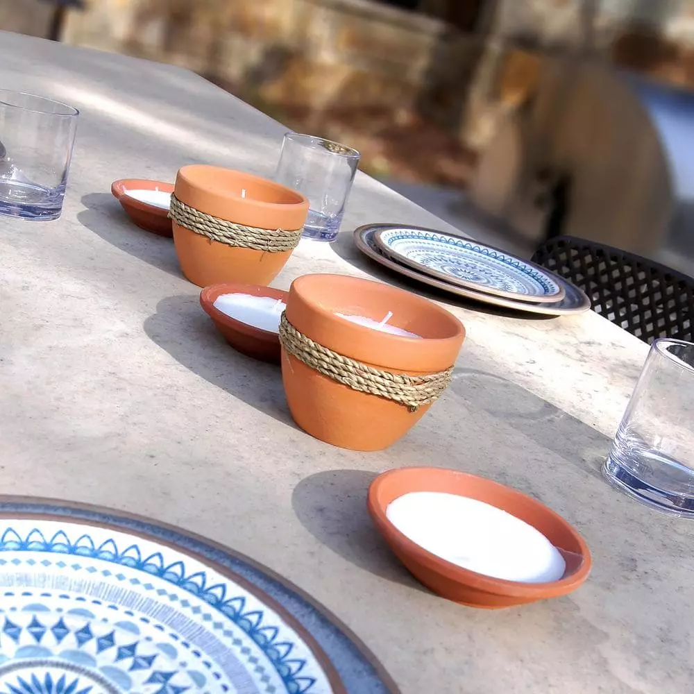 Add our small and simple Fauna Terracotta Citronella Candles to your outdoor space for subtle natural accent pieces! The traditional terracotta look of these outdoor citronella candles is the perfect complement to any neutral decor and provides a grounding contrast when paired with colorful decor. If you love adding the neutral color of terracotta to your outdoor living space, try pairing this Patio Essentials 3-ounce Terracotta Dish Citronella Candle, 3-pack with any of our other terracotta citronella candles and space them, along with a few torches, 18-36 inches apart around the perimeter of your outdoor space for maximum coverage..