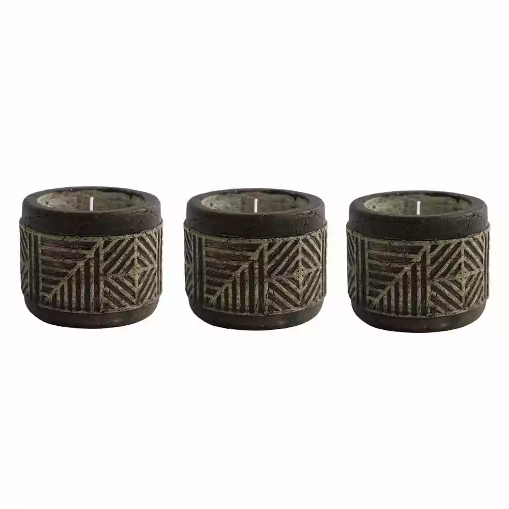 Create a dreamy outdoor space that soothes your wanderlust with our Ome Geometric Citronella Candles. The textured, hand-carved look of this outdoor citronella candle adds an artisan charm to your patio or deck that will make you feel like you’re lounging in an Mesoamerican paradise! Perfect as a table centerpiece or placed on a small side table, this small citronella candle is a stylish way to light up your evenings with a warm, cozy glow. Add to the old world charm-style of this Patio Essentials 6-ounce Geometric Carved Citronella Candle, 3-Pack by pairing them with any of our other wanderlust-inspired citronella candles and tiki torches and spacing them 18-36 inches apart around the perimeter of your outdoor space for maximum coverage.
