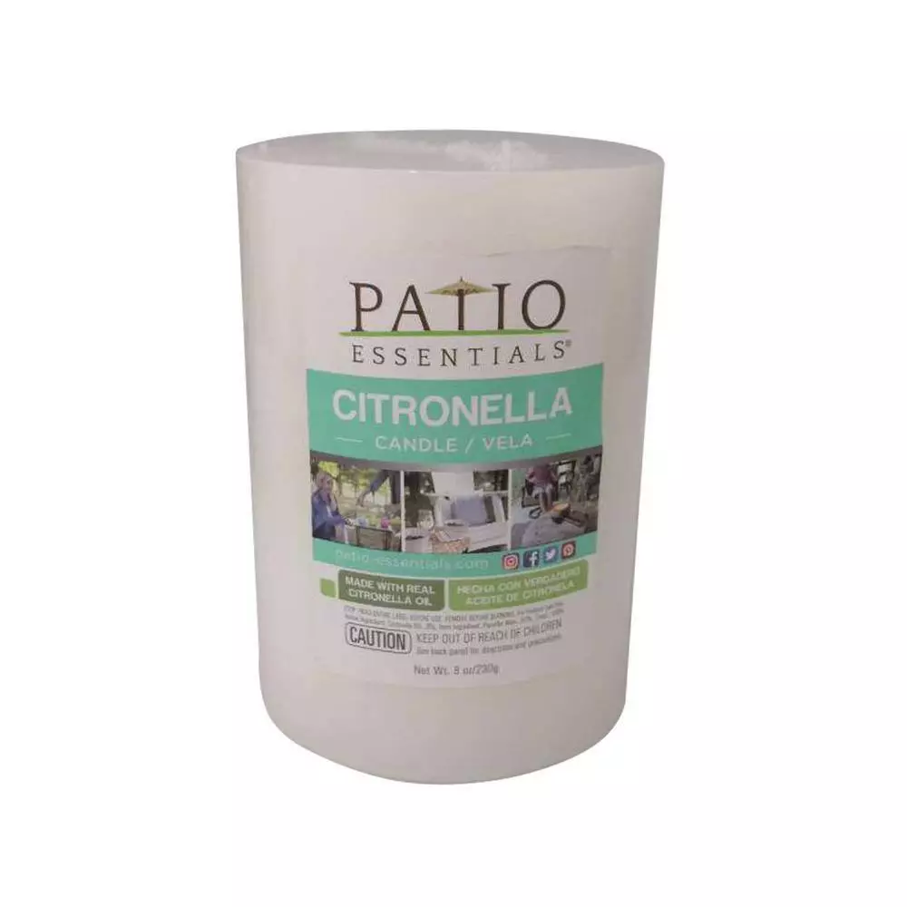 The 8 oz. PATIO ESSENTIALS Citronella Pillar Candle, 12-pack is the perfect addition to your patio. Whether you’re looking for a candle to fill your favorite candle holder or need a replacement candle for your decorative lantern, PATIO ESSENTIALS 8 oz. citronella Pillar candles will help add to the ambiance of your outdoor space. for best results, pair with other PATIO ESSENTIALS citronella candles or torches to create a barrier of protection.