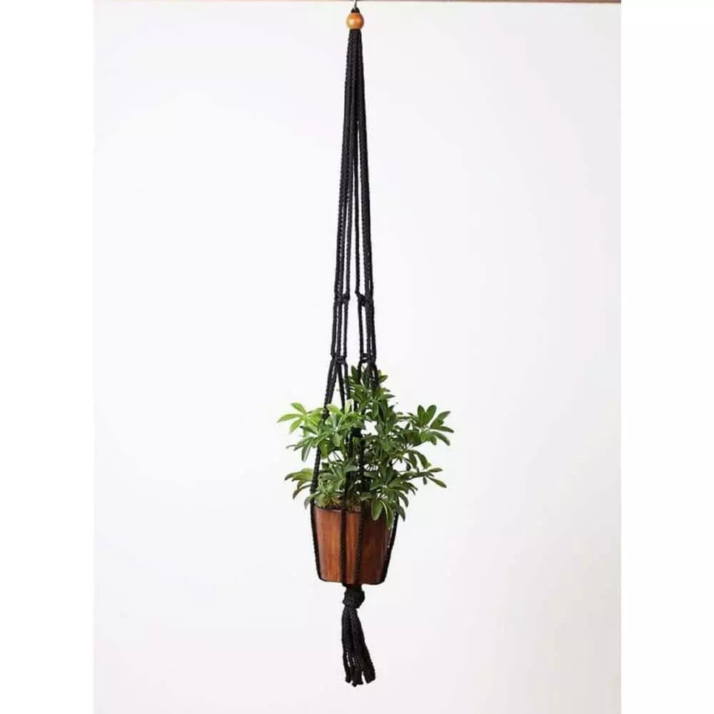 Simple, sleek version of macrame plant hanger. UV coated so that it can be used both indoors and out. Our macrame plant hangers match perfectly with neutral pots and pottery.