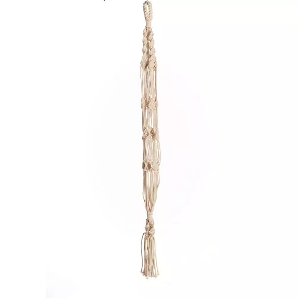 Primitive Planters Woven Knotty hanger made with 100% woven cotton and has multiple sets of knots. Holds pots ranging from 7 in. to 12 in., not weighing more than 20 lbs. Gorgeous workmanship on this hanger. Pair it up with a Primitive Planters S-Hook for easy hanging. Plant hanger only, pot and plant not included.