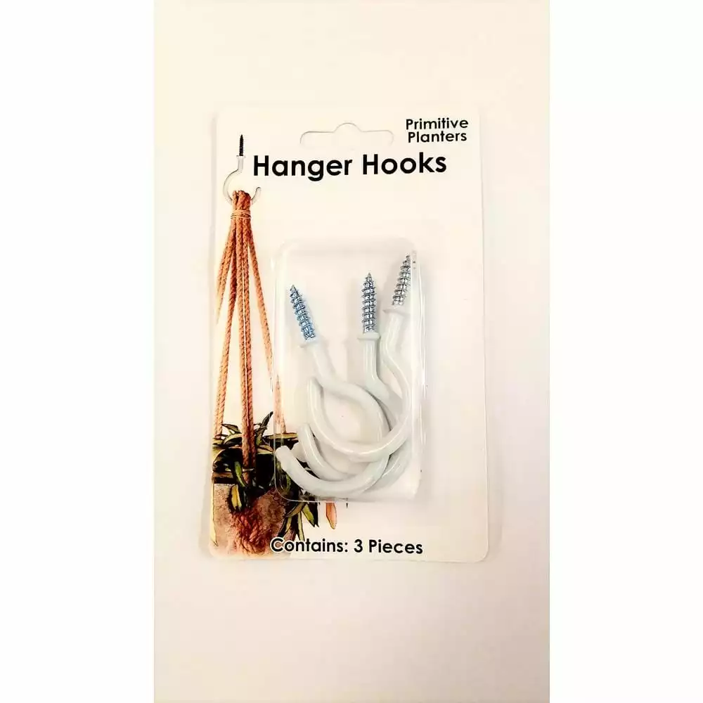 Primitive Planters Hanger Hooks come 3 hooks to a pack. Perfect to use with any of our plant hangers for easy hanging. Hanger Hooks can attach to ceiling in a stud. Pair up with our S-Hook.