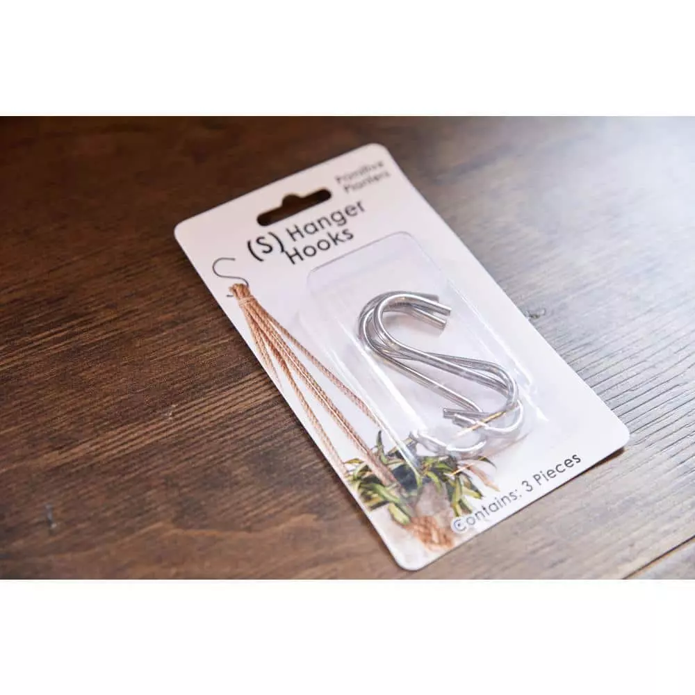 Primitive Planters S-Hooks come 3 hooks to a pack. Perfect to use with any of our plant hangers for easy hanging. S-Hooks can attach to ceiling hooks or off of a variety of items.