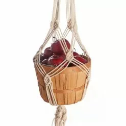 Primitive Planters 42 in. Off White Woven Cotton Beaded Cotton Woven Plant Hanger with Brown Beads