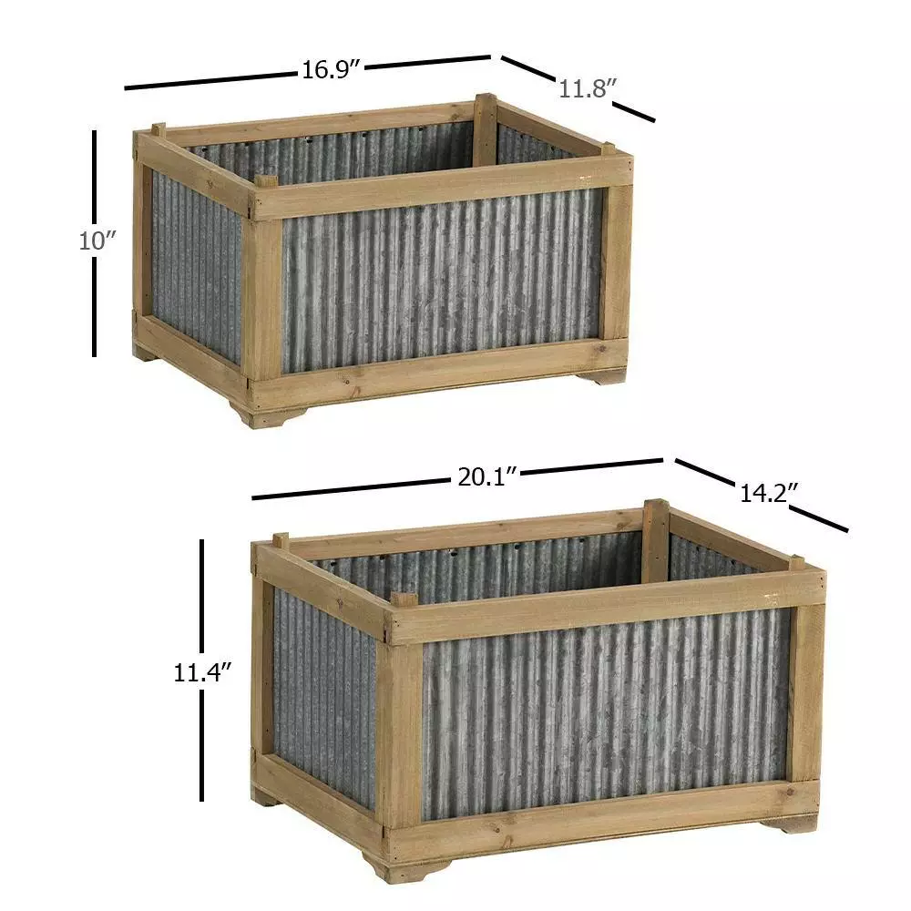 Embrace farmhouse-inspired elements with this set of 2 rectangular box frame planters. Galvanized metal and wood come together to accentuate its rustic flair. The materials used consists of 70% fir wood and 30% galvanized. Add some effortless style to the garden with the box frame design of these planters. Place them in any indoor or outdoor area and create a beautiful and timeless atmosphere. Made of durable materials, these pieces of decor are sturdy and long-lasting.