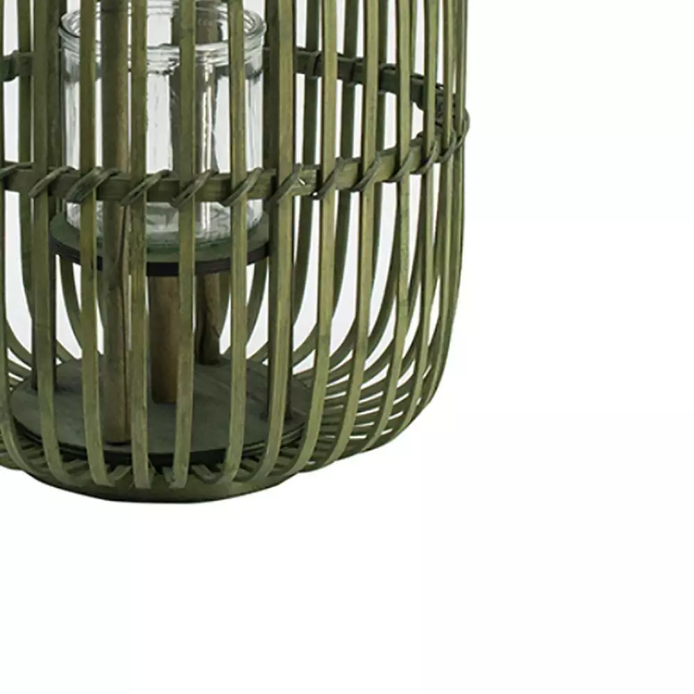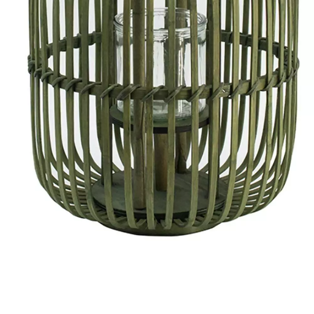 Invite some light and fun into your home with this chic and trendy bohemain solar bamboo flame effect hanging pendant. This nautical bamboo lantern features a natural driftwood style frame with lattice accents surrounding a hurricane glass candle holder inside. Made up bamboo, it features a bellied shape body which can hold a pillar candle easily. This large-sized lantern also features a ready to hang attached handle on top.