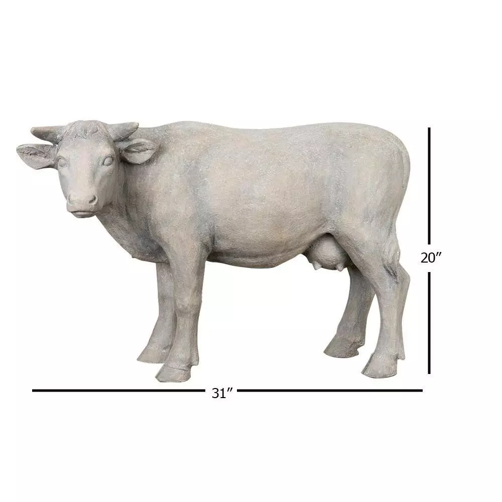 Standing Cow Statue – beautiful cow standing. This statue is a beautiful depiction of one of the most beloved farm animals. Finished in Gray tone, the realistic texture brings this statue to life. He will surely give your yard an outstanding impression of farm life. Perfect for any home! Life-sized cow sculptures are hand-painted cast resin, suitable for indoor or outdoor use. Go ahead, you won’t be sorry!