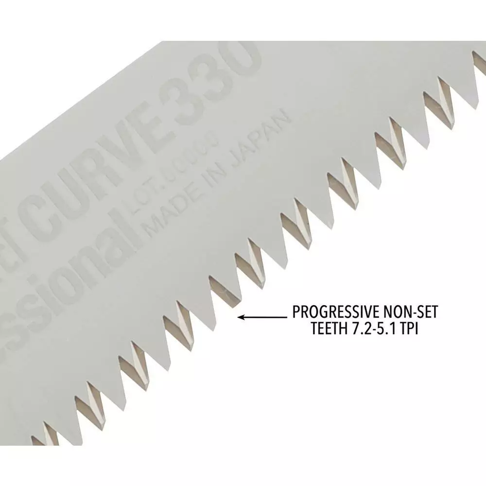 - Progressive teeth (6 teeth/30 mm to 8.5 teeth/30 mm) are finer near the handle and get progressively larger allowing for smooth starts and productive finish of each stroke