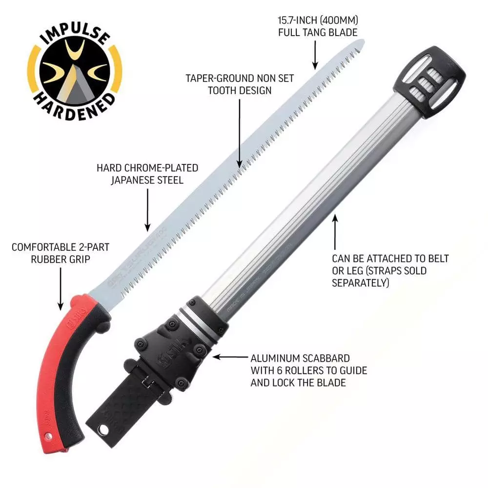 Replace your old, dull blade with a new and reliable one that gets the job done every time. The TSURUGI 16 in. Large Teeth Tree Saw is a unique tree saw that utilizes advanced materials and blade grinding techniques to deliver durable and precise cutting power. This saw features super slender ‘spine of teeth’ which were designed to cut hard-to-soft wood, even in tight quarters. This sleek steel blade is ideal for pruning and for garden and lawn care. The handle is constructed of polypropylene for a comfortable grip during use.