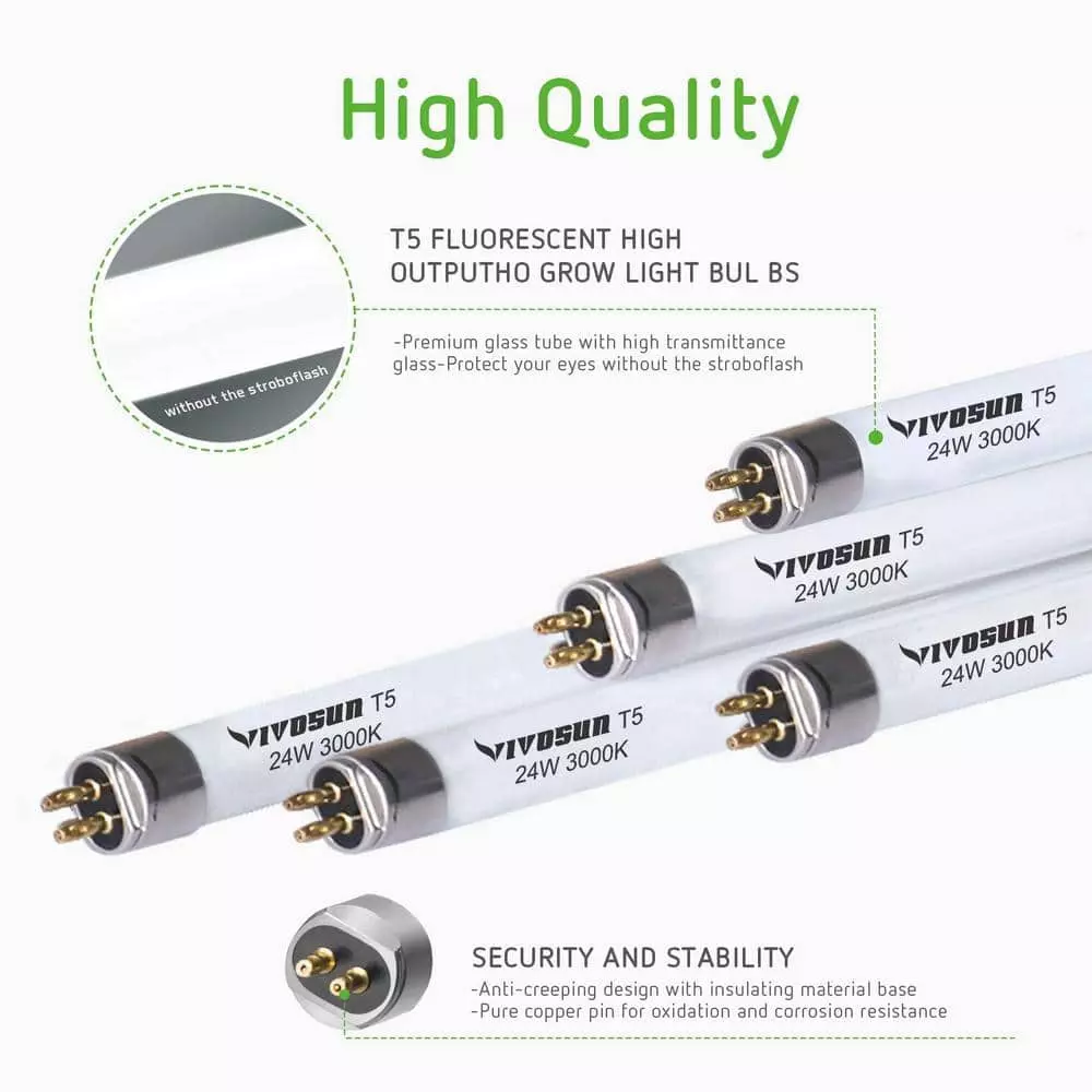 - All VIVOSUN T5 florescent tubes are HO (High-Output) tubes, which produce far more lumens than standard or HE tubes