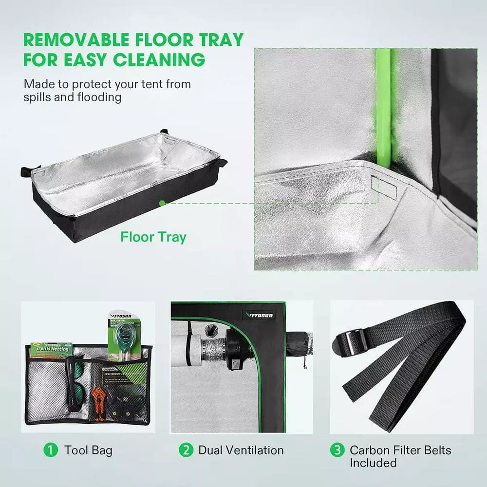 - Strong metal poles and solid steel corner connectors that will uphold your grow tent’s frame and lock your structure securely in place