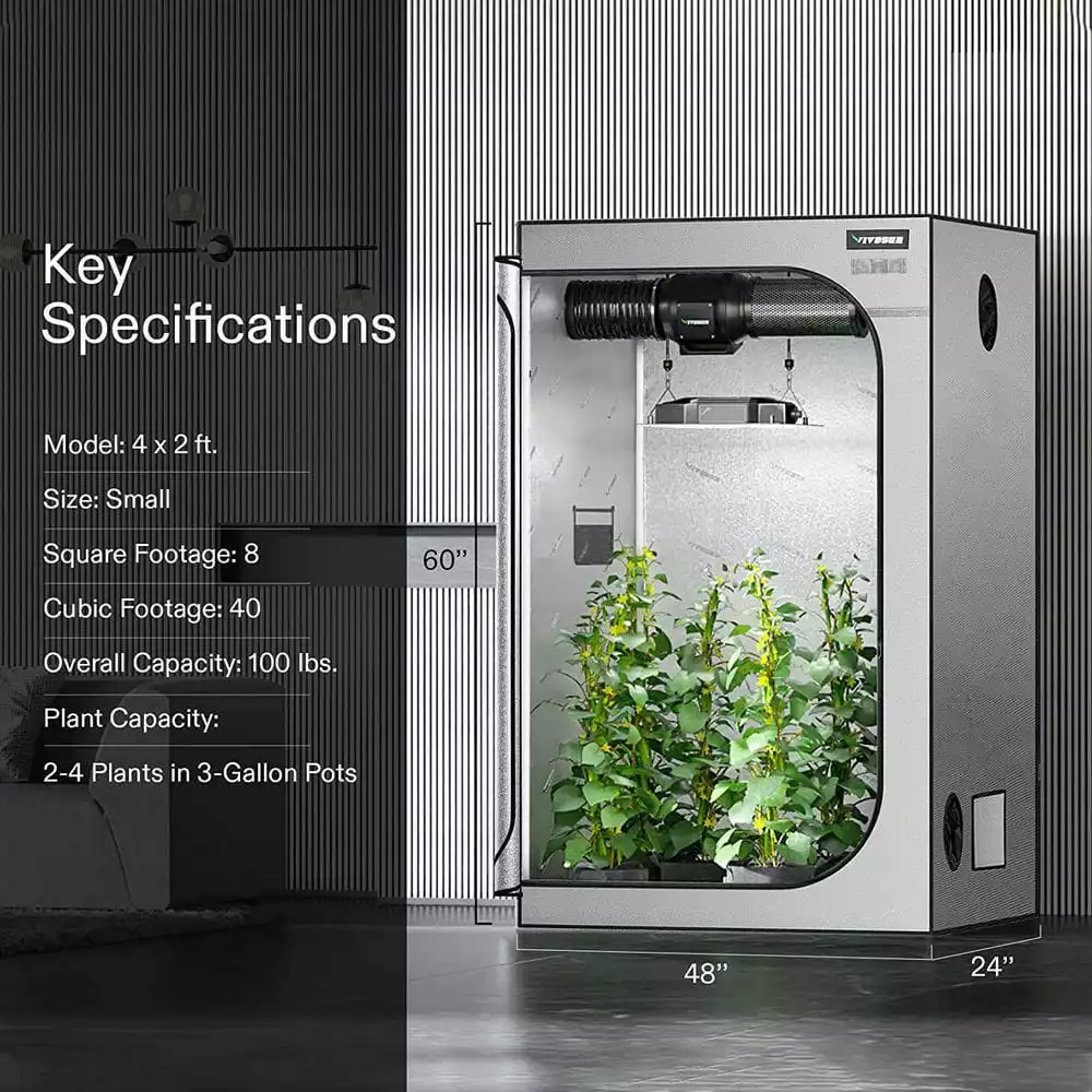 VIVOSUN 4 ft. x 2 ft. Gray Grow Tent with 19 mm Poles, Observation Window and Floor Tray -Deals Silky Store vivosun grow tents gt 0001 4f 1000