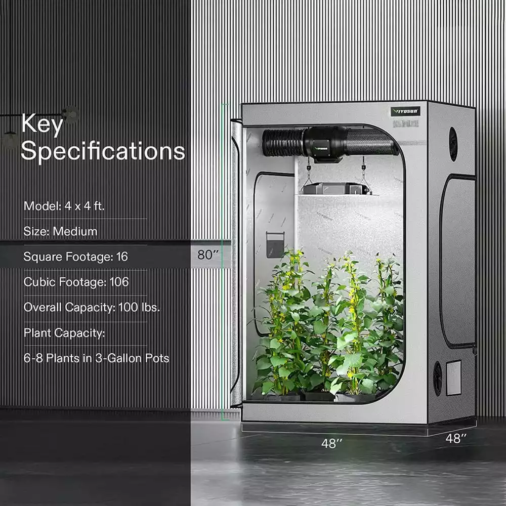 The VIVOSUN grow tent blocks all light from escaping and is lined with 100% reflective mylar to boost the output efficiency of any grow tent setup. The zipper with black lining creates a lightproof seal without the need for additional flaps and self-adhesive tape. The quality 340 g Oxford material is tear-proof and double-stitched for good light blocking; lining made from non-toxic PE material is safer for your plants and the tent is supported by strong metal poles that are specially finished for smooth installation. Our easy-access door unzips smoothly and the observation window makes it easy to peek inside without disturbing your setup, so you don’t throw out your back checking on your plants. VIVOSUN grow tents are easy to install with no tools needed, even if you’ve never done something like this before; unrivaled craftsmanship and materials make our grow tent the excellent choice for professional growers.
