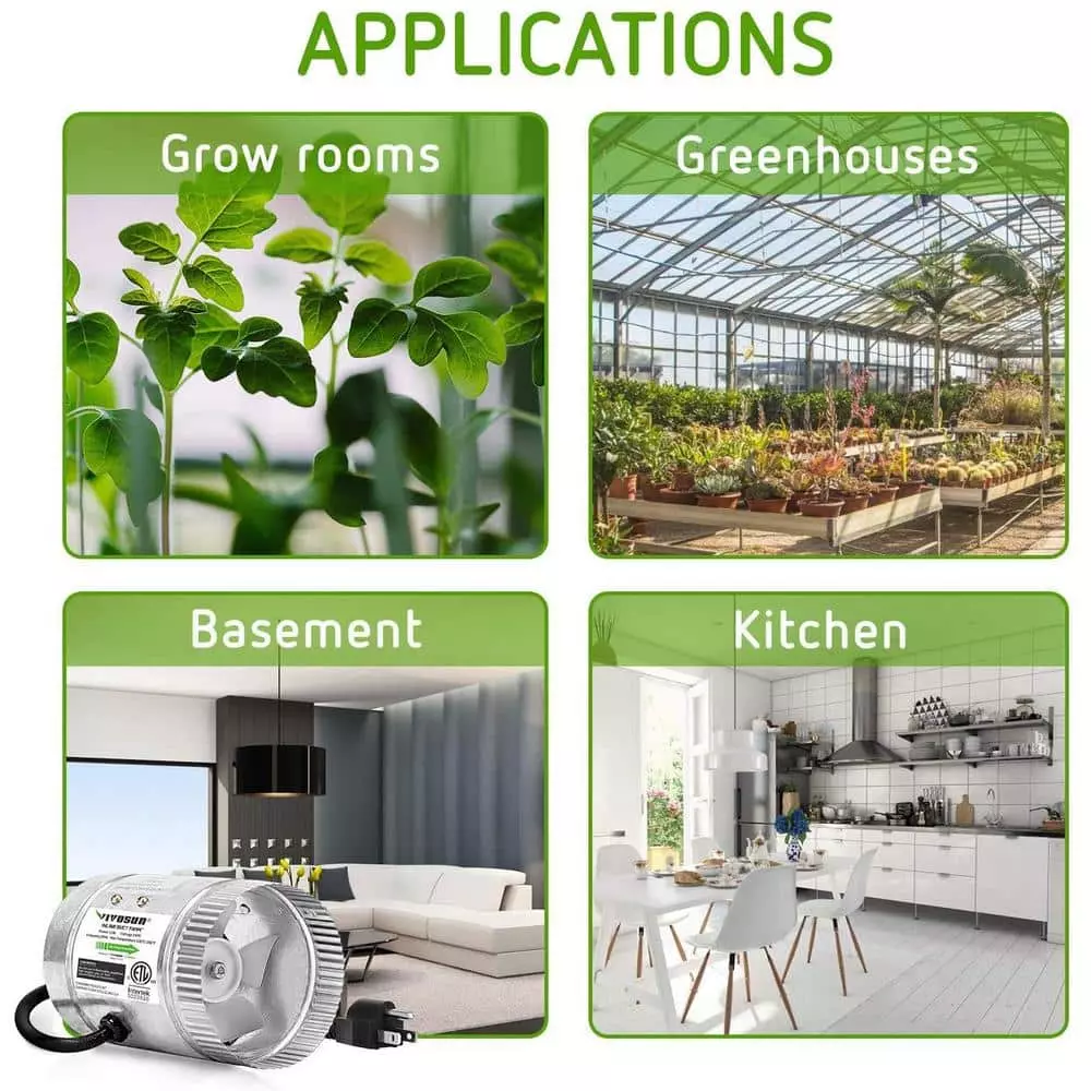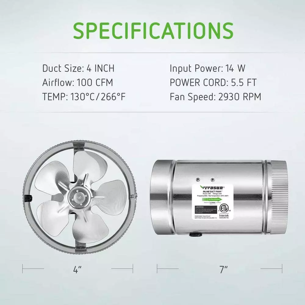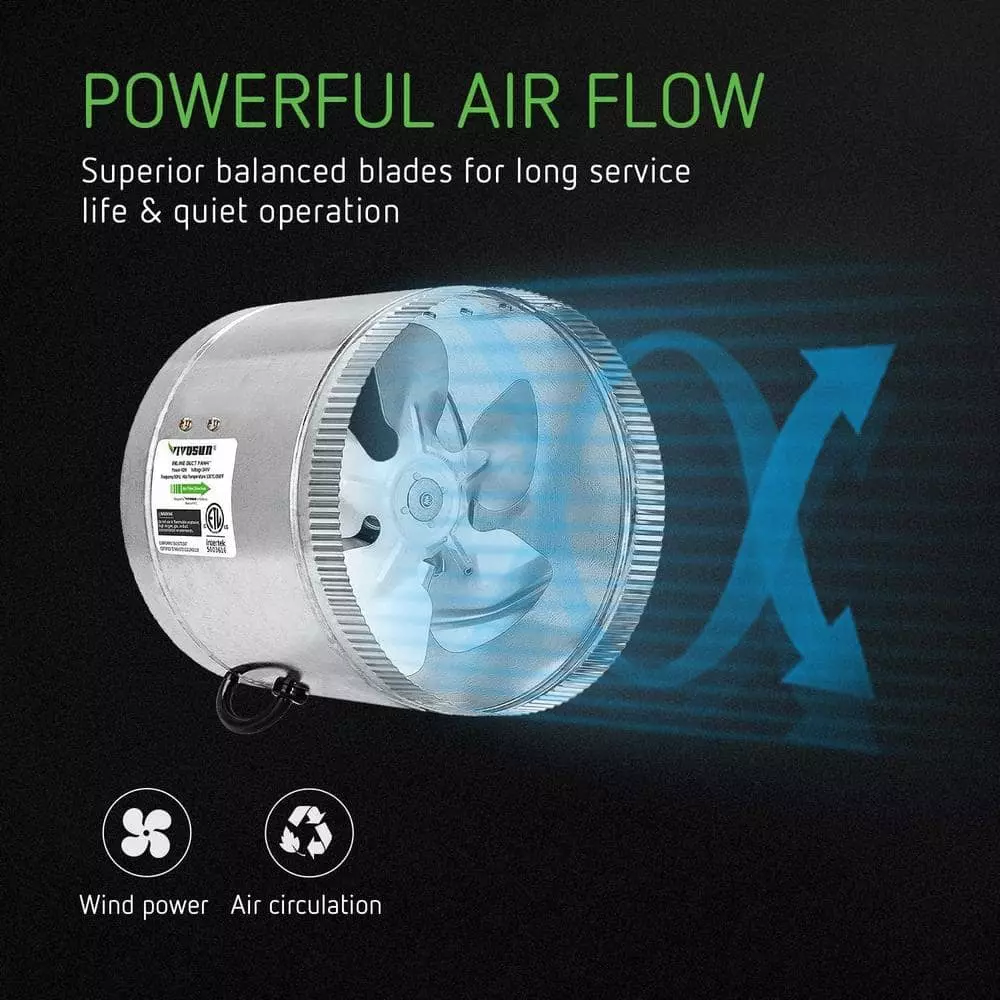 VIVOSUN inline duct fan helps with ventilation issues. This duct booster fan is perfect for boosting airflow in long runs of ducting. Tight, precise construction eliminates rattling and reduces wear and tear to give the element a long life. It is used as intake fan to bring fresh air into grow rooms, also used as exhaust fan in smaller setups with LEDs or Lights under 400-Watt.
