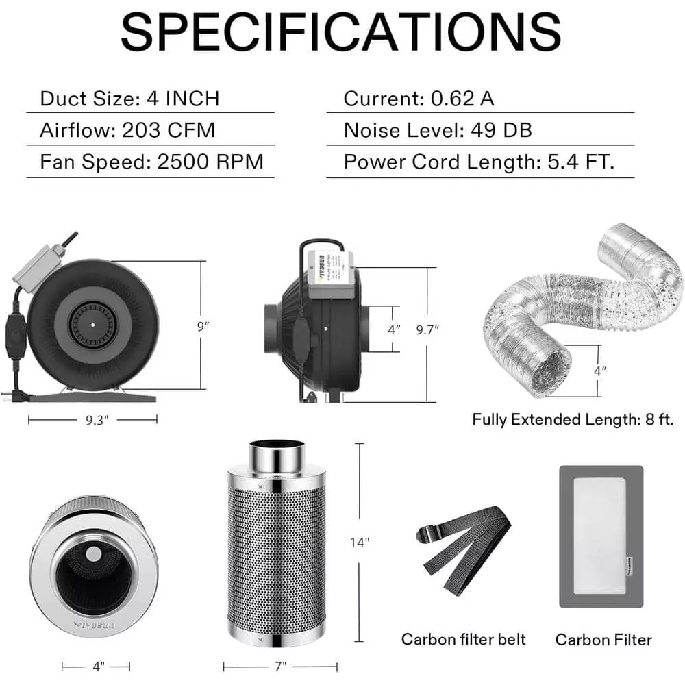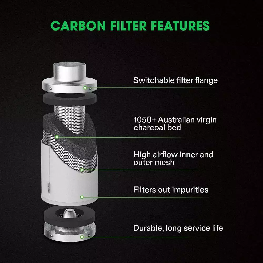 - Carbon filter eliminates undesirable smelliness, pungent smells and particulates from indoor grow tents and hydroponics grow rooms