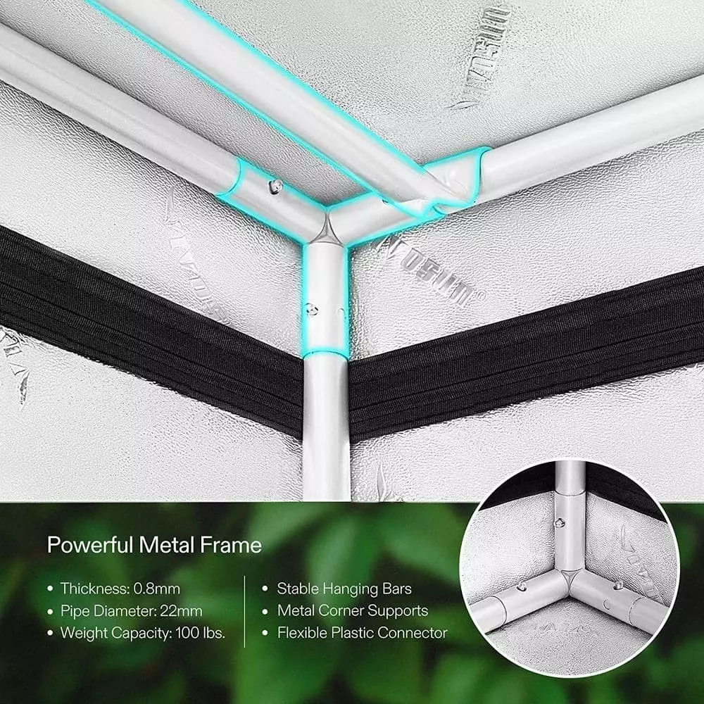 The VIVOSUN grow tent blocks all light from escaping and is lined with 100% reflective mylar to boost the output efficiency of any grow tent setup. The zipper with black lining creates a lightproof seal without the need for additional flaps and self-adhesive tape. The quality 340 g Oxford material is tear-proof and double-stitched for good light blocking; lining made from non-toxic PE material is safer for your plants and the tent is supported by strong metal poles that are specially finished for smooth installation. Our easy-access door unzips smoothly and the observation window makes it easy to peek inside without disturbing your setup, so you don’t throw out your back checking on your plants. VIVOSUN grow tents are easy to install with no tools needed, even if you’ve never done something like this before; unrivaled craftsmanship and materials make our grow tent the excellent choice for professional growers.