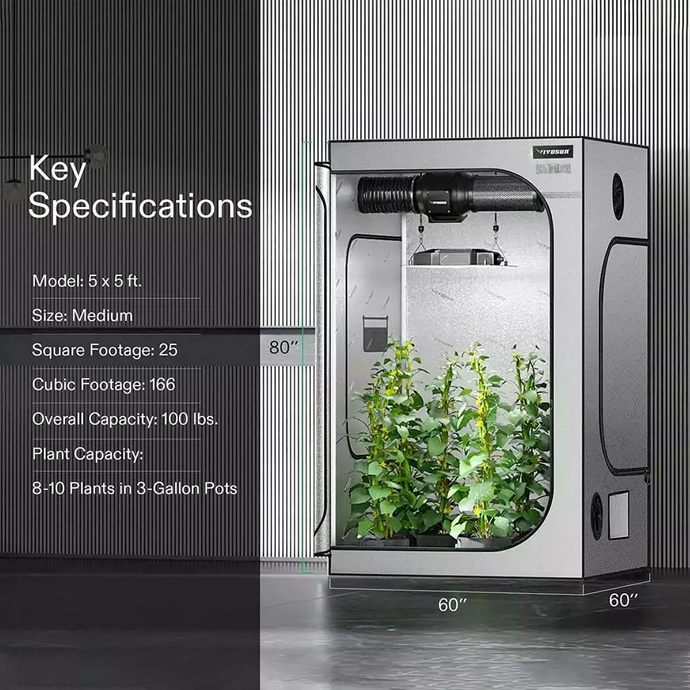 VIVOSUN 5 ft. x 5 ft. Gray Grow Tent with 22 mm Poles, Observation Window and Floor Tray -Deals Silky Store vivosun grow tents gt 0004 4f 1000