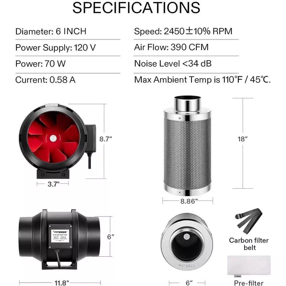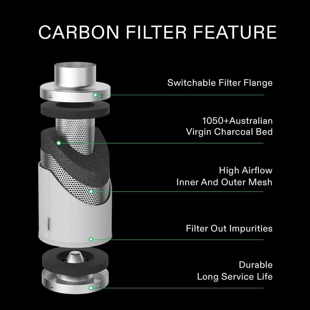 VIVOSUN inline duct fan helps with ventilation issues. This fan is built durable, runs smooth and quiet. Durable plastic fan housing and blades for extremely low noise; Variable speed controller for easy fan speed adjustment. VIVOSUN’s carbon filter uses activated charcoal, which means each carbon molecule is magnetically charged to attract passing molecules, whether they be smelliness or other impurities. Our Australian Virgin Activated Carbon is of good quality and will last for multiple years.